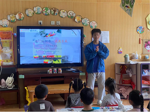 为深入学习习近平文化思想,积极弘扬中华优秀传统文化,坚定文化自信,进一步响应团中央“百万大学生进社区”志愿服务号召。4月18日下午,工业设计学院2023级产品设计2班团支部前往济南市长清区崮云湖中心幼儿园开展了“‘遗’脉相承·泥虎生威”社会实践志愿服务活动。