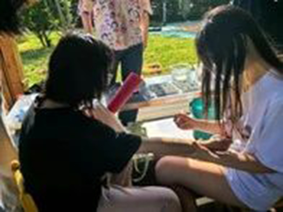 (图:志愿者帮助小朋友和家长完成扎染)