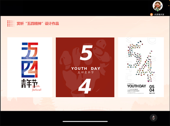 其次,同学们赏析了关于“五四运动”相关的设计作品。在设计作品中,这些精神要素往往通过创意性的视觉语言得以呈现,使同学们能够深刻感受到五四精神的魅力和价值。在设计作品中,在一些海报设计中,设计师运用鲜艳的色彩和简洁的线条,勾勒出青年人的形象,展现出他们积极向上、充满活力的精神风貌。同时,通过巧妙的构图和寓意性的元素,设计师将爱国、进步等主题融入其中,使观众能够一眼看出作品所要传达的五四精神内涵。