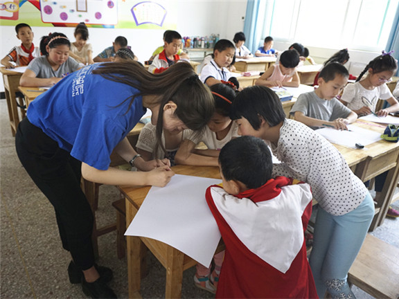 本次活动主要目的是教授小学生基础的素描绘画,让小学生们更加了解和接触绘画。首先,作为老师的志愿者在黑板上示范基础素描,并对专业名词定义进行讲解。老师作完示范后,同学们就迫不及待的开动脑筋,根据自己的理解,在纸上勾画出几笔稚嫩的线条,遇到不会的问题时主动地请教老师。面对着孩子们真诚且稚嫩的笑脸,志愿者倾尽所能将自己所知道的知识传授给学生们。面对调皮的孩子志愿者会耐心的教导,对不认真听讲的同学,志愿者们会想方设法提高同学们的注意力。在营造一个活泼的课堂氛围的同时也让孩子们更好的学习知识。最后,志愿者结合范画对学生作业进行逐一讲解,对本节绘画课作业作出点评。给予表现优秀的同学糖果、手绘范画等作为奖励。