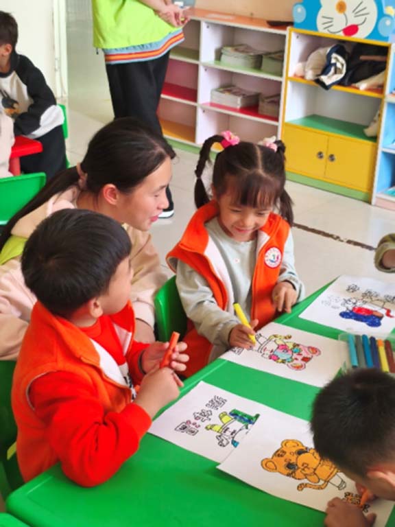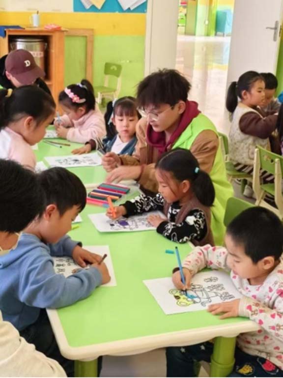 随后,志愿者们将提前准备好的预防疾病小常识线稿图分发给小朋友们,让他们进行填色。在填色的过程中,小朋友们不仅加深了对预防疾病知识的记忆,还发挥了自己的想象力和创造力,创作出了一幅幅色彩斑斓的作品。
