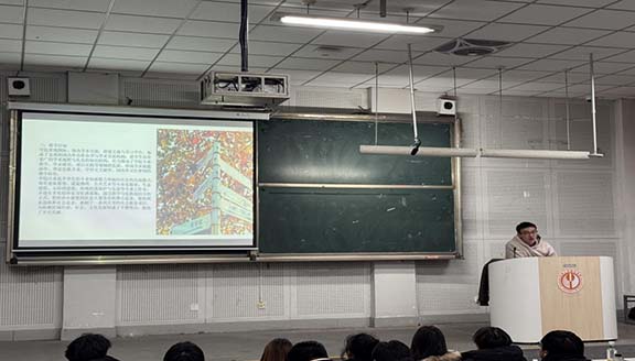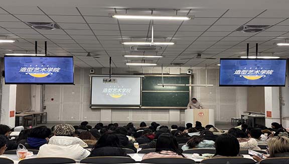 团课伊始,赵正阳向同学们讲述了各个学院的发展历程、专业简介和教学科研,在不断整合各项资源中各学院逐渐形成了自己的优势和特色。随后,赵正阳向同学们展示了各学院多彩多样的品牌活动,如纸板搭建大赛、美文诵比赛、辩论赛、五月的花海等,同时列举了近年造型艺术学院取得的优异成绩,鼓励同学们积极投身于校园活动中。