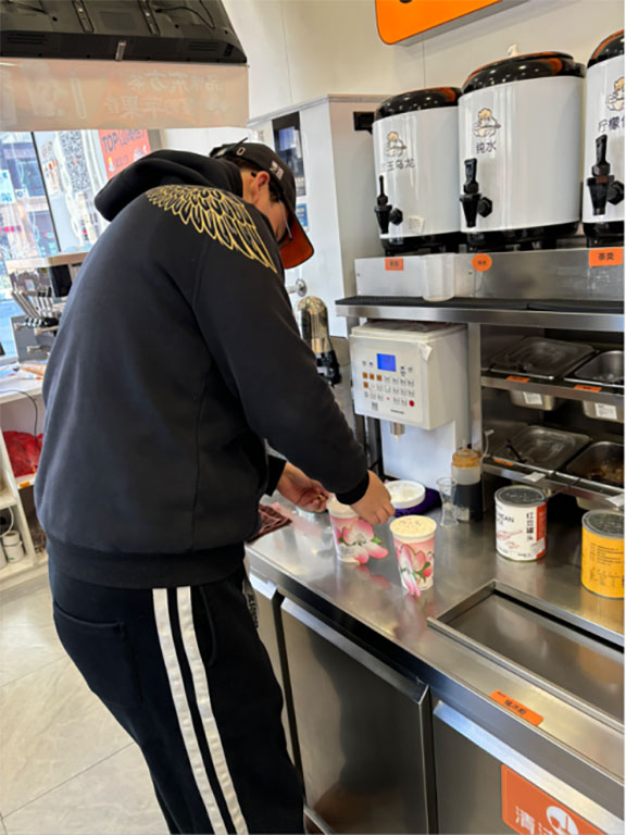 这个假期,我选择在一家奶茶店实习。刚到奶茶店时,一切都很陌生。从学习各类奶茶、果茶的制作配方,到熟练操作各种机器设备,我付出了不少努力。每一杯奶茶都需要精准把握原料的比例和制作的时间,稍有差错就会影响口感。