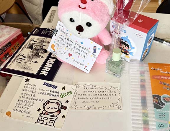 在积极捐赠物资过程中,同学们还主动为福利院的孩子们写下了真诚祝福和美好祝愿,以爱心为火炬,照亮希望之路,为福利院的孩子们送去了温暖与希望。
