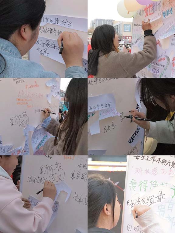 女性朋友们撕下固有标签,接过志愿者手中的书签,写下对彼此的祝福。一句句温暖的话语,承载着对女性力量的赞美与支持,传递着爱与希望。