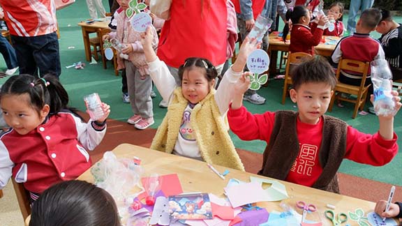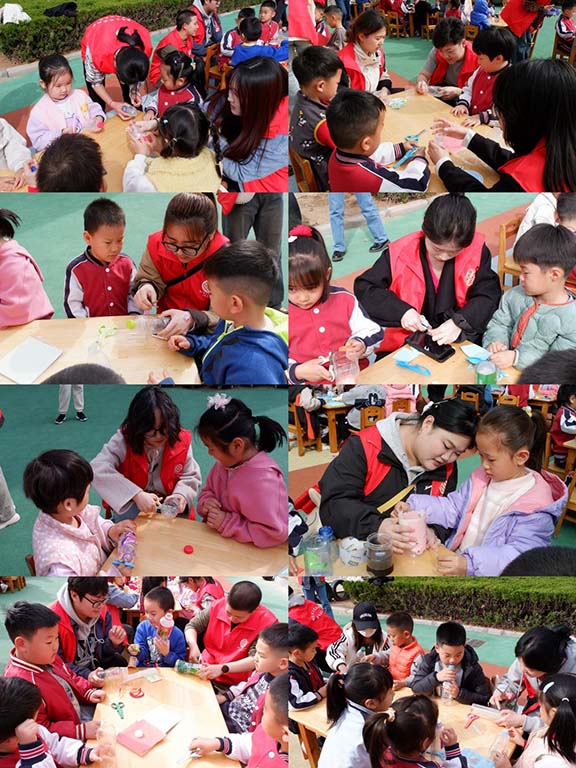 在志愿者们的指导下,小朋友们发挥想象力,用彩笔勾勒图案,将废旧的矿泉水瓶等材料改造成了独具特色的生态小花盆,实现双重环保效益。活动培养了孩子们的动手能力,也让他们体会到了资源循环利用的低碳意义。