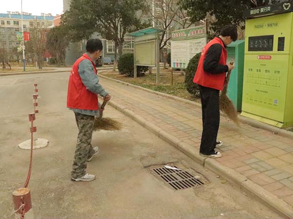 志愿者们进入长兴美郡社区,对小区内的生活垃圾及卫生死角进行清理,捡拾绿化带中的废弃塑料袋、纸屑等垃圾,清理道路杂物,用实际行动美化了社区环境,诠释了“奉献、友爱、互助、进步”的志愿服务精神。