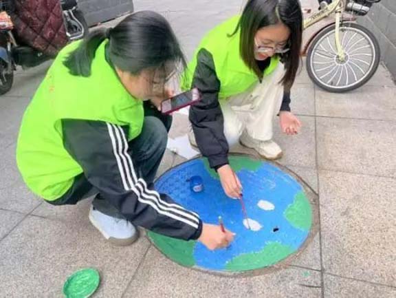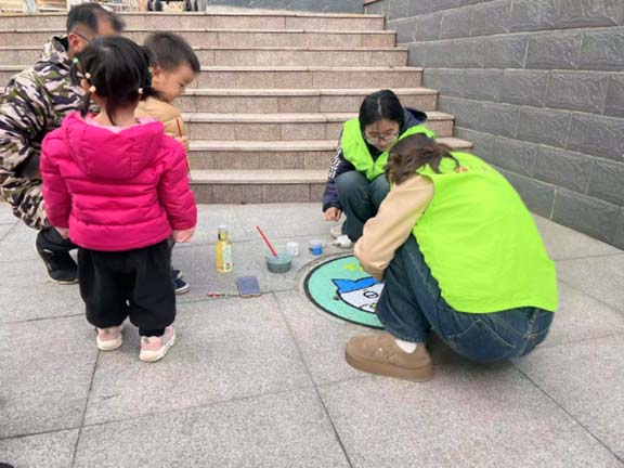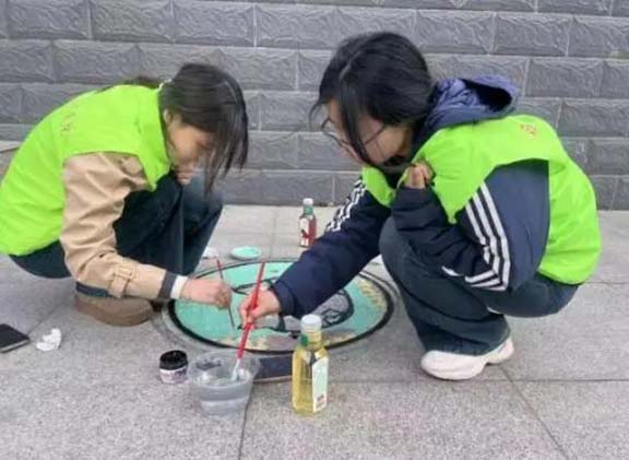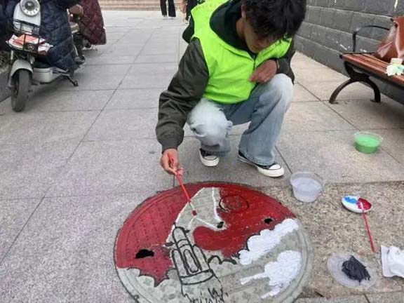 聚焦专业特长,我院青年志愿者走进常春藤社区,开展“井盖‘锋’景线,文明新画卷”主题活动,将艺术特色融入社区服务,用画笔传递文明新风。