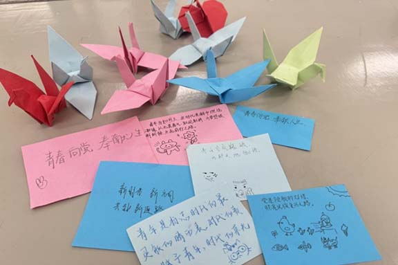 (图为同学们在本次团日活动制作的感悟卡片与手工作品)