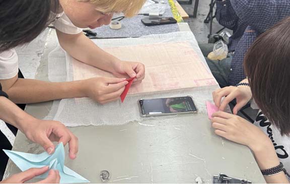(图为同学们正在制作创意折纸)