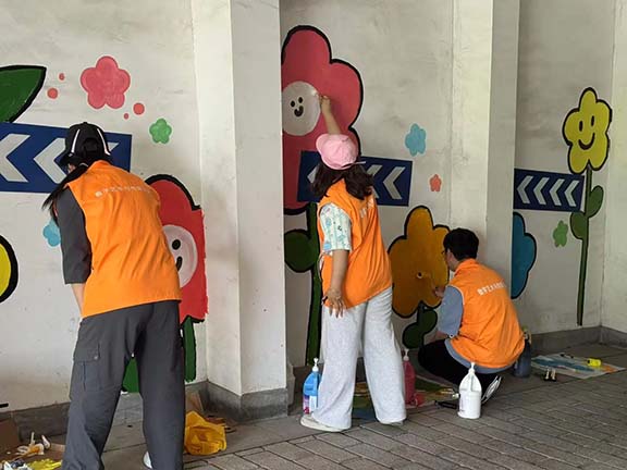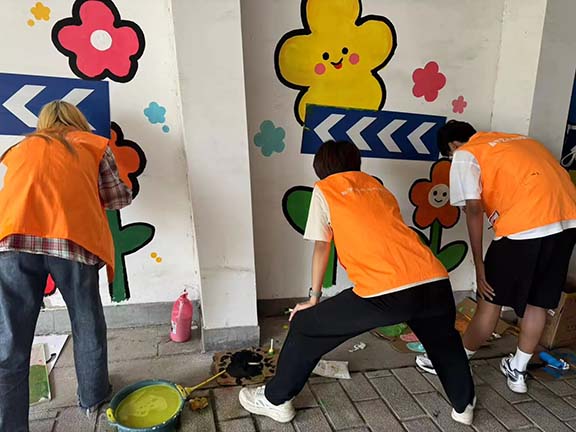 活动现场,志愿者们化身"社区艺术家",以匠心勾勒美好图景。有人手持粉笔勾勒轮廓,有人调配色彩、填充颜料,有人细致打磨细节,将心中的美好构思一点点呈现在墙面上。经过数小时的精心绘制,原本单调的墙面逐渐变得生动起来,为社区注入盎然生机。