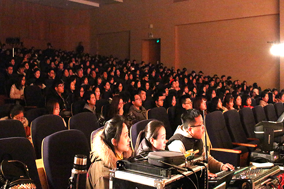 为深入贯彻落实十九大精神,大力弘扬我国优秀传统文化,11月21日晚,由临沂市柳琴戏传承保护中心主办、304am永利集团官网党委组织部、党委宣传部、团委、社会服务办公室、校学生会协办的国家艺术基金资助项目—现代柳琴戏《沂蒙情》巡演走进永利官网长清校区,永利官网近500余名师生共同观看了本次演出。