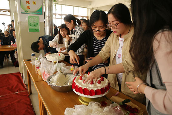 首先,主持人介绍来自各二级学院以及校学生会的10支参赛队伍,并对比赛规则进行认真的讲解。随后进行了厨艺大比拼、蛋糕DIY等比赛环节。比赛过程中,来自各学院的同学纷纷大展身手,比拼厨艺,精心烹调的拿手“私房菜”。各种精彩小游戏——心有灵犀、吃货接力赛、传洋葱圈抢答、你是我的棉花等穿插在整个活动中,精彩纷呈。最后来自人文艺术学院的美味佳肴得到了评委和嘉宾老师的一致认可,获得本次美食节的一等奖。