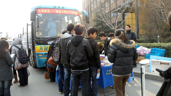 青春在奉献中闪光,热血在爱心中流淌,为了弘扬“献血皆救人一命,无偿献血健康储蓄”的主题,12月12至13日,山东省血液中心的工作人员与齐鲁电视台爱心献血车在学校长清校区十字路口进行为期两天的无偿献血活动,全校师生积极参与到此次献血活动中。校学生会生活部与志愿者协会的成员协助本次活动。