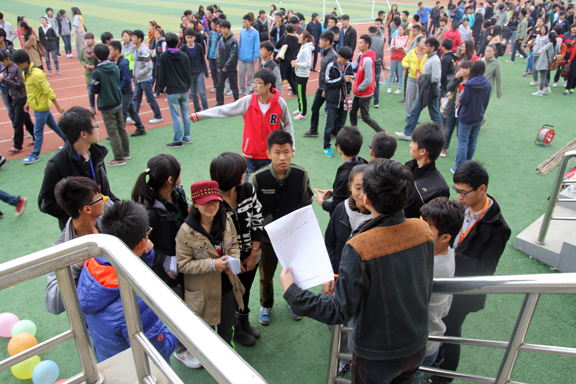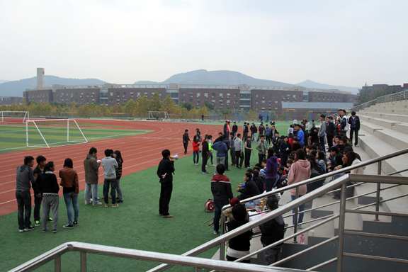 伴随即将展开的第二届“勇者之巅”大型素质拓展活动,11月3日早上,校学生会第二十届筹委会成员以及各部部长在长清校区足球场展开了素质拓展的前期准备活动。