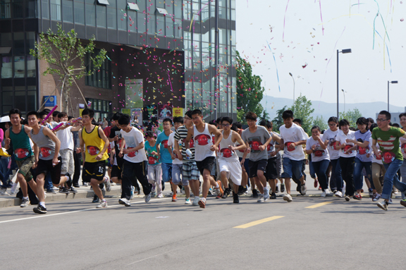 本次比赛全程七公里,共设有七个关卡,每个关卡都分配有相应的工作人员负责比赛路段和参赛者的安全状况,确保比赛的顺利进行。下午,校园马拉松比赛举行了开幕式,出席开幕式的有团委老师邹晓红,李忠诚,学生会常务主席王家和,孟伟以及各二级学院学生会主席。在开幕式中,体育部部长刘奎明和运动员代表李刚分别进行了宣誓,随后,在团委老师李忠诚的一声令下,参赛者迈出了矫健的步伐开始了此次比赛。