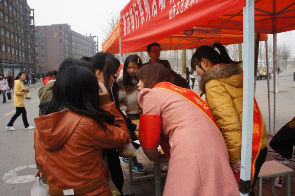 本次活动为雷锋月系列活动之“追逐雷锋精神 寻找身边雷锋”图片征集大赛提供报名和咨询。活动共分两个时间段,分别是上午11:30—12:50、下午14:30—18:00,活动期间伴着革命红歌及歌颂雷锋精神的歌曲,每位干事佩戴着“为同学服务”的礼带与袖章,认真负责的投入到活动中,向来往同学介绍雷锋月系列活动的整个过程与参与方式,并对同学提出的一系列问题作出详细的解答。前来参与活动的同学对此次活动都报以极大的兴趣,并希望通过此次活动发扬学习雷锋的光荣传统。