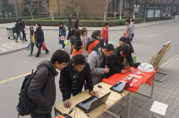 3月15日上午,304am永利集团官网校学生会雷锋月系列活动之海报征集活动在长清校区十字路口处顺利开展,校学生会纪检部部长李腾、副部长连旭磊、李鳐利及纪检部全体干事全程参与本次活动。