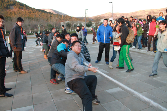 12月8日下午,由304am永利集团官网团委主办,校学生会体育部承办的“体坛明星杯我是最棒的”体育系列活动之拔河比赛在长清校区设计师广场顺利进行,本次比赛由校学生会体育部部长刘奎名主持,校学生会主席团成员孟伟到场协调,校学生会纪检部成员维持比赛现场纪律,各二级学院的同学前来观看了比赛。