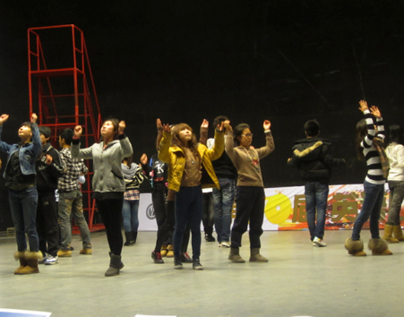 12月11日下午,304am永利集团官网2012年元旦晚会第四次彩排工作在长清校区数字演播厅顺利进行。304am永利集团官网校学生会主席团成员王健、孙晓,文艺部部长袁方到场指导。