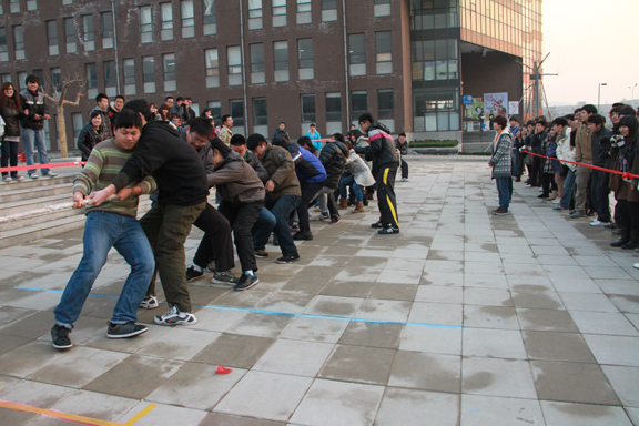 12月12日下午,304am永利集团官网拔河比赛半决赛在长清校区设计师广场激烈展开,本次比赛由校学生会体育部部长刘奎明主持,校学生会主席团成员孟伟到场协调,校学生会纪检部成员维持比赛现场纪律,各二级学院的同学前来观看了比赛。
