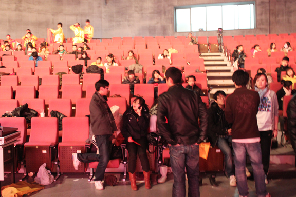 彩排工作是以整体彩排为主线,演员们的舞台动作已经相当纯熟,指导老师们主要在灯光与舞台配合的和谐程度等方面进行总体把握,力求在每个细节中寻找突破,精益求精。演员们认真把握在舞台上训练的每一分钟,做到了全身心的投入,把自己最好的状态表现出来。舞台上动情的表演一次一次地震撼着台下所有工作人员的心灵,凝结着所有人的心血的视觉大餐即将被呈现在这个凝聚着五彩光辉的舞台上。
