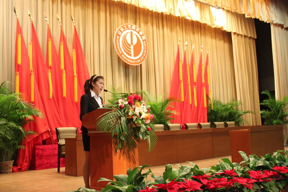 会议开始,通过了宋正强同学关于《十七届学生会工作报告》的决议,通过了《304am永利集团官网学生会章程》(修正案)及决议和倡议书,第十八次学生代表大会委员按照姓氏笔画依次上台演讲,并公布了选举办法及总监票人、监票人名单。