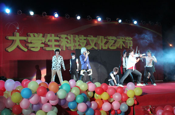本次开幕式紧密结合主题,演绎了歌曲、街舞、COSPLAY、小品等十几个精彩绝伦的节目,充分展示永利官网大学生朝气蓬勃、奋发进取的青春风貌。晚会在一曲荡气回肠的《怒放的生命》中拉开帷幕,随后,永利官网大学生社团等学生精心排演的节目依次精彩上演:舞舞协会带来的《STAR STRUCK》激情四射、活力无限;拉丁协会的《踏歌》引领我们来到了“宜烟宜雨又宜风,拂水藏村复间松”的梦幻清幽世界;学生会成员倾情演绎的《足迹》歌颂了当代大学生青春飞扬的理想信念及对美好未来的执著追求;动漫协会带来的《家庭教师》更是以完美的表演为我们展示了五彩斑斓的动漫世界。整个晚会高潮迭起,充满了青春活力、喜庆和谐的气氛。晚会最后在小合唱《相亲相爱》的动感旋律中圆满落幕。
