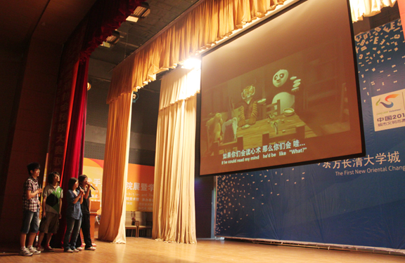第二场比赛为电影配音与英文歌曲演唱二选一,参赛选手认真的表演,幽默流畅的的对白,优美动人的歌声为到场观众奉献了一场精彩的视听盛宴,而亲友团的加油助威也使得赛场氛围更加活跃、更加激烈。