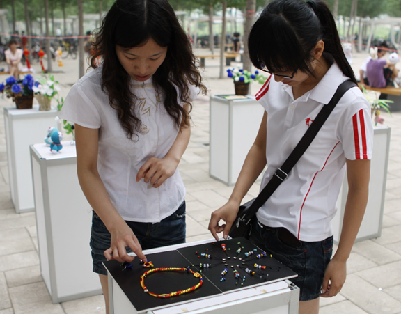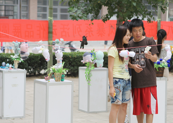 本次展览作品均出自手工艺协会及民艺协会,作品取材丰富,形式多样,制作精巧。形式独特的彩泥、手工编制的吊坠手链、丝网制作的的插花、袜子娃娃、纸质的玩偶、精美的相框,五彩缤纷,每一件作品都是编制者匠心独运的制作。各种新颖别致的展览作品让大家一饱眼福,吸引了不少同学驻足观看。活动一直持续到下午5:00,整个手工作品展过程进行的十分顺利。