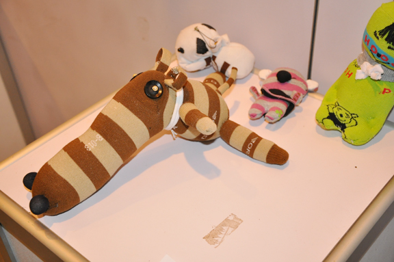 本次展览广受同学们的欢迎,同学们积极对“袜子娃娃”的相关技法及背景进行咨询,让自己的对手工艺术作品有了更深层次的了解。此次“袜子娃娃”是用袜子为面料,以PP棉或者珍珠棉作为填充物,用纽扣或者小珠子做眼睛和鼻子,手工制作人偶或者动物形状的玩偶。而不是部分人以为的做袜子上面的小图案或者装饰娃娃。袜子娃娃通常为8CM到100CM不等。由于袜子花纹和面料各有不同,加上制作者创意和手工也有差异,所以袜子娃娃神态各异,惟妙惟肖。加上袜子面料柔软,手感非常好,深受同学们欢迎。