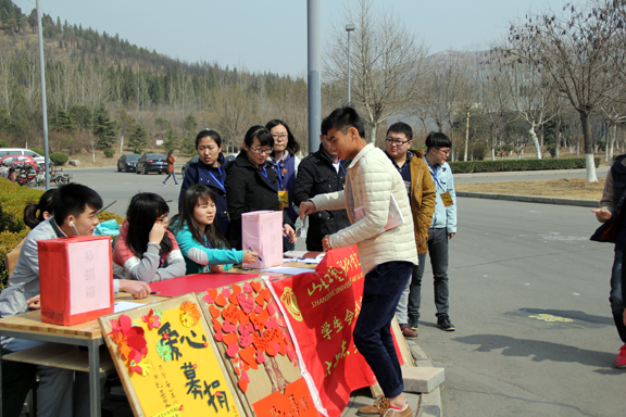3月10日—14日,一场爱心接力在304am永利集团官网长清校区展开。现代手工艺术学院爱心社和304am永利集团官网志愿者协会联合组织的“为刘昌昊同学加油”爱心募捐活动得到全校师生的大力支持,纷纷献上自己对刘昌昊同学的一片爱心。 刘昌浩是现代手工艺术学院13级公共艺术专业学生,该同学寒假期间因身体不适,遂去医院做身体检查,经详细检查后,查出“血癌”病症。经了解,刘昌浩同学一针化疗针2800元人民币,每疗程需四到六针甚至更多,无菌房一天的住院费用为500元人民币,经过几个疗程化疗之后仍需骨髓移植方可痊愈,在第一疗程半个多月的治疗中已花费人民币高达二十余万元,后续治疗保守估计需要100余万元人民币,各项支出给他的普通家庭带来了沉重的负担,他的父母已近五十,昂贵的治疗费对他原本就不富裕的家庭条件来说,无疑是一个天文数字。面对病魔,刘昌昊同学也表现出了积极和病魔斗争的乐观精神和勇气。得知此情况后,现代手工艺术学院党总支和团总支立即组织了此次爱心募捐活动,呼吁广师生伸出自己的援助之手,帮助这位受病魔困扰的同学。仁者大爱,全校师生在了解情况后慷慨解囊、积极捐款,赶到募捐现场,纷纷伸出援助之手,加入到与刘昌昊同学共同对抗病魔的爱心募捐队伍中,使募捐箱前不断有停驻的同学献出一份爱心,志愿者们认真记录了捐款金额。钱虽不多,但大家心中的爱令人感动。有的同学还送上了寄托着祝福的话语,寄托着无限真情。感动,不一定要感天动地,或许只是同学们捐献的几块钱……祝愿刘昌昊同学早日康复,重返校园! 本次活动让大家明白了水滴虽小,但能穿石的道理。最后祝愿刘昌昊同学早日康复,重返校园。感谢各位老师同学对刘昌浩同学的关心与帮助,相信这份沉甸甸的爱心一定能为刘昌浩撑起一片生命的蓝天!让我们一起为他祈祷。
