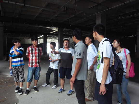 乳山正华装饰有限公司是学校和校友办的校外实习基地。室内和景观两个专业的同学按照规定进行了工作分配。第一天室内的同学在办公室里画一些简单的图,景观同学在外面进行室外调查。第二天,室内的同学就开始每人做一套室内的效果图,景观同学则在工地学习体验。第五天,公司的项目负责人带着学生们全体去工地现场考察期间,学生们接触到了许多技术、材料、施工、人员管理和资源管理方面的问题,增长了许多实践知识。