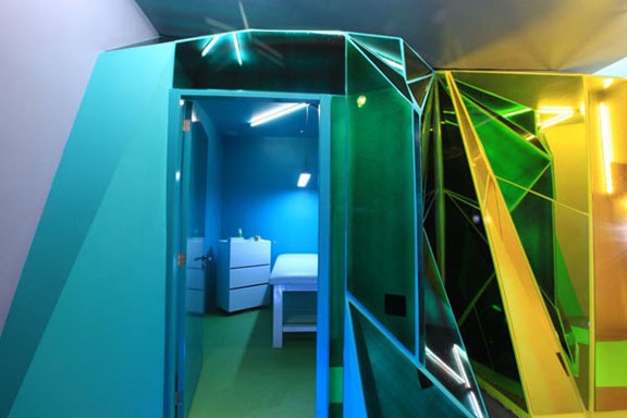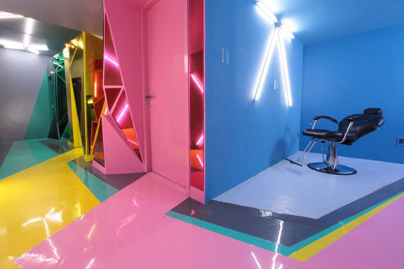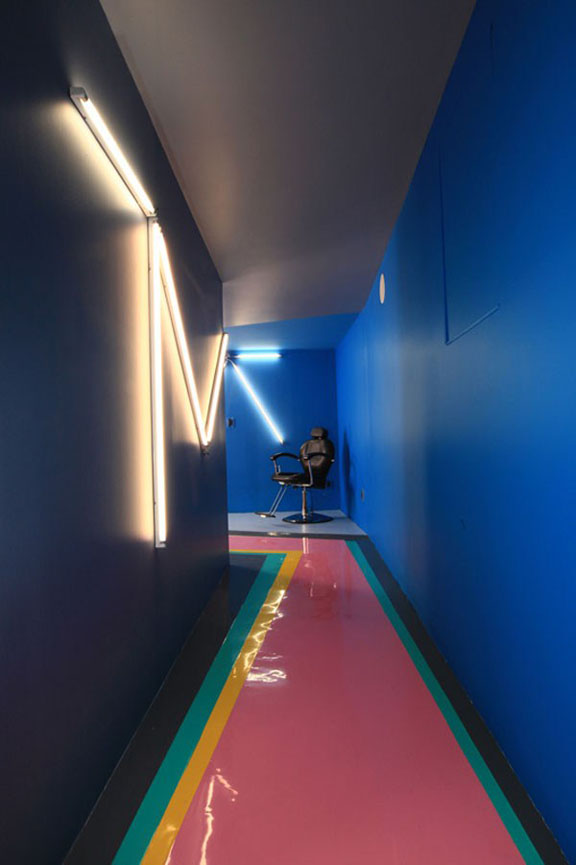 在墨西哥城的波朗科街区Wax Revolution时尚沙龙,独特的色彩空间设计释放着激情与活力。沙龙大厅,配备了一个明亮的蓝色墙壁和高光泽多面的黑色前台,粉笔板的墙壁,记录着最新的特价情况。位于走廊尽头的一个小型开放式蓝色小屋作为沙龙酒吧。充满热情的Wax Revolution时尚沙龙,在时尚界来了场色彩革命。