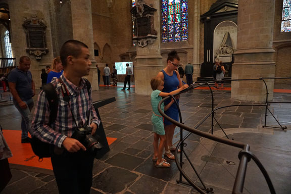 代尔夫特老城并不大,半个小时就能从头走到尾。我曾在一个下午专门去找弗米尔创作《代尔夫特风景》和《小街》的位置,也曾试图寻找引起代尔夫特大爆炸的那个火药库。结果当然是没法找到。一方面是因为经过364年的岁月变迁,很多建筑可能进行了重新规划;另一方面,因为在弗米尔时代,画家们还没有走出画室进行写生的习惯。也许,弗米尔早已预料到后世会有人来找这个位置,所以他也许是通过这种方式在和我开玩笑吧。在我参观的过程中,坐在老教堂长椅上的那个安静地看宣传册的女人(图7.),在新教堂一起实地考察学习的母女(图8.),让我非常感动。我也曾坐在老教堂的长椅上,虔诚地望着讲经台,畅想着如果我生活在这里,内心会不会也能如此安静?是否也能和孩子一起这样去学习?