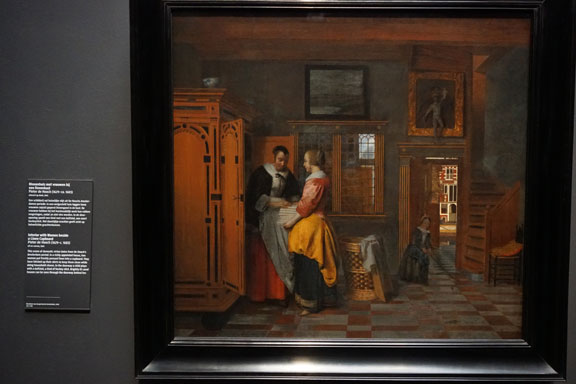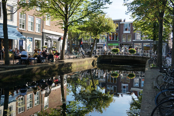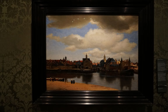 不知道有多少人像我一样,因为知道弗米尔(Johannes Vermeer,1632.10.31—1675.12.15),并且看过他的原作,而一定要到他的家乡代尔夫特(图1.),来看看这个孕育出伟大画家的小城到底是个什么样子,并试图寻找一下他创作《代尔夫特风景》(图2-1.)和《小街》的位置。在这里,我之所以用“弗米尔”,而没用国内学界常用的“维米尔”,是因为在与两家荷兰人聊天过程中,我亲耳听到他们对“维米尔”的不知所云,和对“弗米尔”的如雷贯耳。和弗米尔的画一样,代尔夫特小城最大的特点就是安静,从周围的环境到人的内心都很安静。这可以说是这座小城最最重要的特征。尤其是像我这次行程,从繁华的大都市巴黎,乘着火车,进入到如此宁静的一个小镇,感觉到仿佛一下子就归隐了起来。任凭外面世事沧桑变化,这里的时间真的凝固了一般。其实,相较于阿姆斯特丹、哈勒姆、海牙、鹿特丹等城市,代尔夫特的吸引力要小很多。之所以在行程当中安排一定要来这里,就是为了追寻弗米尔等画家的生活和创作的轨迹。除了弗米尔之外,这里还有著名的画家法布里蒂乌斯,他的代表作《金翅雀》就在海牙莫里茨皇家博物馆。他1650年定居在此,四年后,也就是1654年10月12日,代尔夫特火药库发生大爆炸,法布里蒂乌斯不幸去世。另外还有宁静室内场景的发明者彼得•德•霍赫(图3.)也曾生活在代尔夫特,其画中透露出来的异常安静的品质,与他在代尔夫特的生活应该有很大的关系。1660年他搬到了大城市阿姆斯特丹。