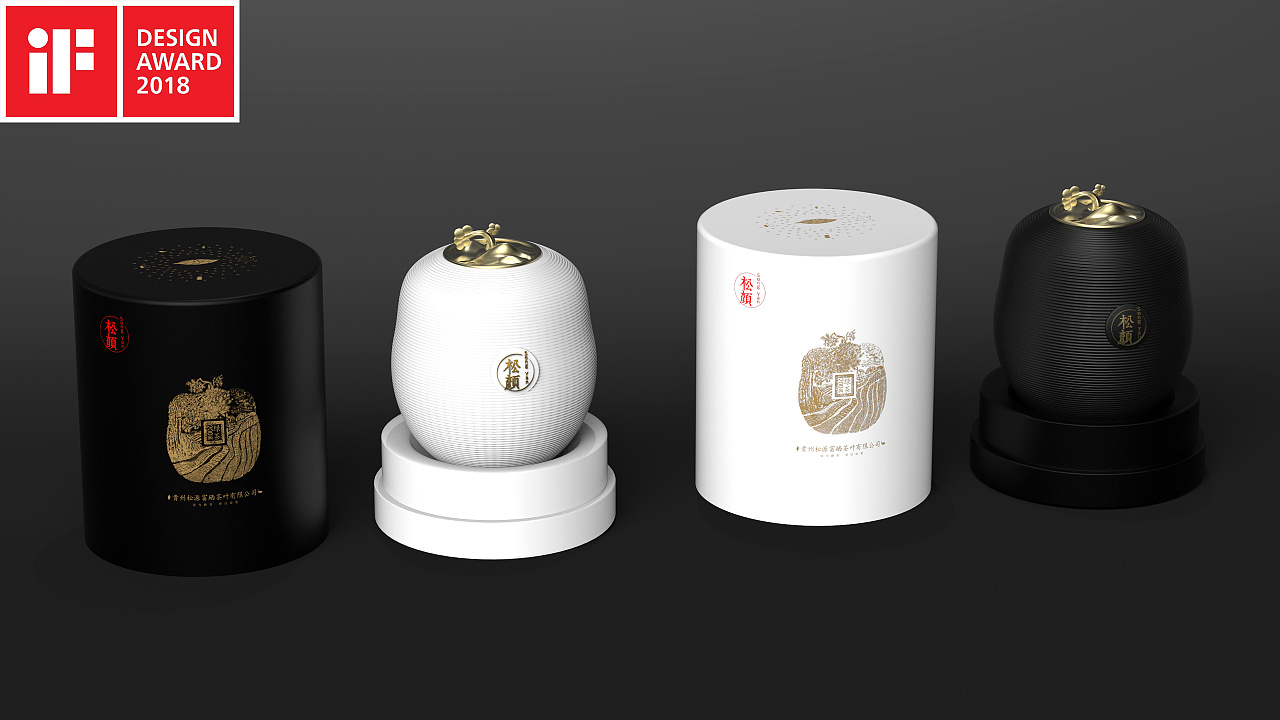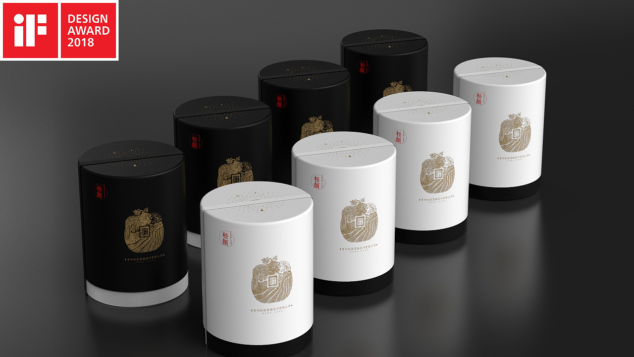 整个视觉形象是通过对茶园生态环境的具象描绘,用素描绘画的形式将、茶山、茶树、茶叶组合成一个完美的茶叶陶罐,陶罐顶部也巧妙的结合出一片茶园的形态,黑白两色分别代表着松颜的白茶与黑茶两大品种,用简单直观的手法传递出松颜茶叶的品牌特色