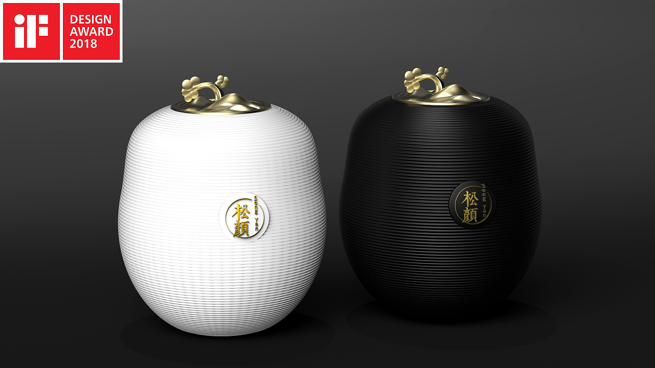 The visual image of the whole artistic work is a concrete description of the ecological environment of the tea garden, through the form of sketch painting, Dasan, tea, tea combined into a perfect tea pot. Top of the pot cleverly construct a tea garden form. Black and white, respectively, represent the two main kinds of Song Yan tea: White tea and Black tea, using a simple and intuitive way to pass out the characteristics of brand of Song Yan tea.