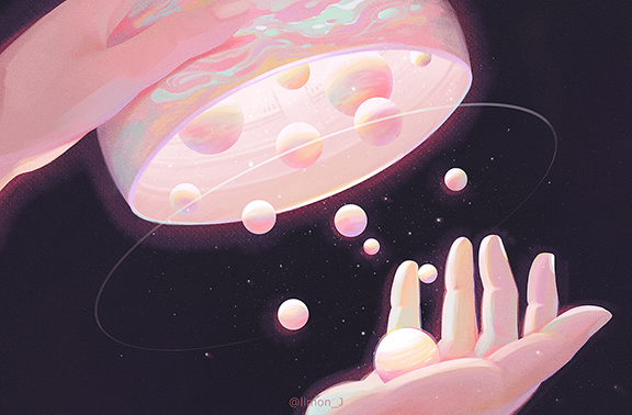 一次商业合作的巧合下试着画了星球,于是展开了星球系列