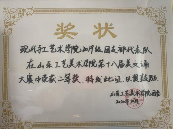2019年10月,加入现代手工艺术学院学生会社会实践部,2020年10月任现代手工艺术学院团总支宣传委员,现任2019级纤维与染织班团支部书记。