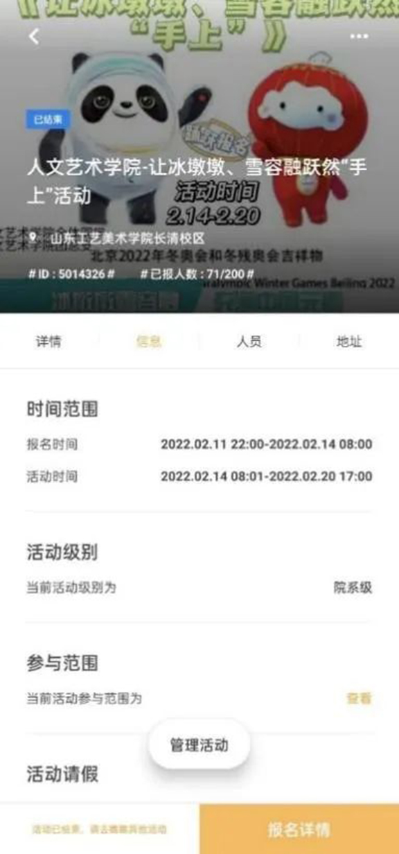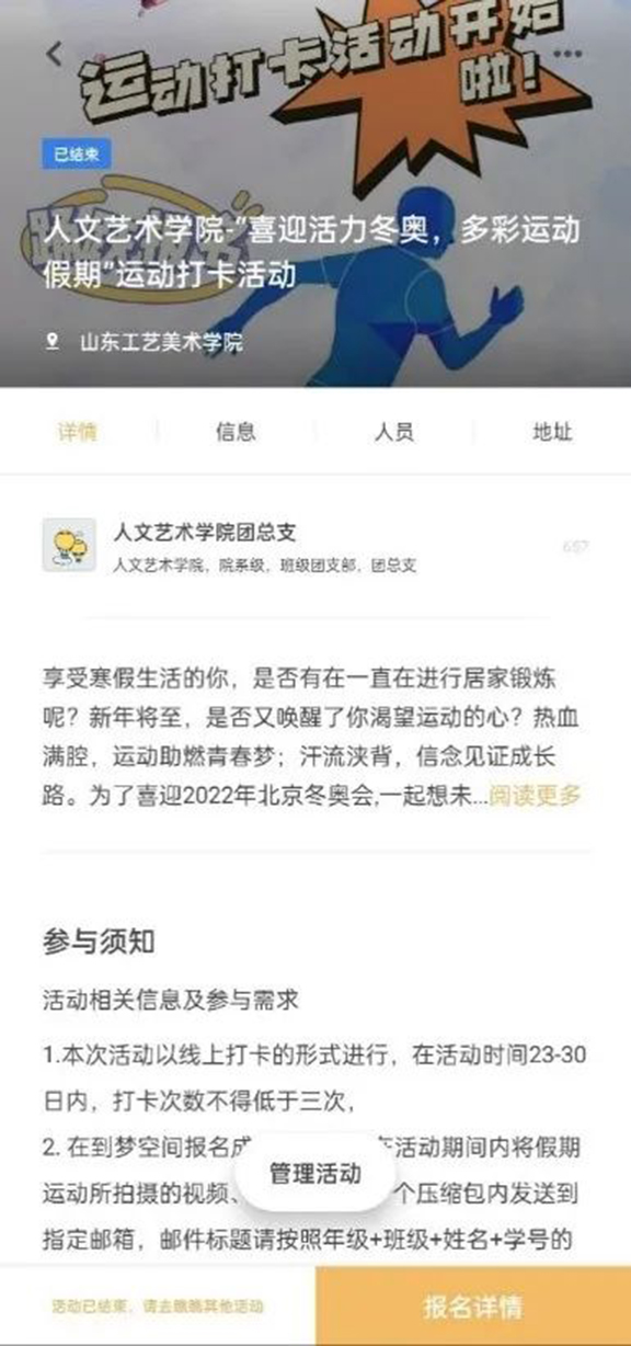 曹庆颖同学认真策划并组织开展各种形式新颖、有特色的团组织活动,例如人文艺术学院“百生讲坛”之“请党放心,强国有我”主题活动、“以青春之名告白祖国”主题团日活动、人文艺术学院“喜迎活力冬奥,多彩运动假期”等活动。
