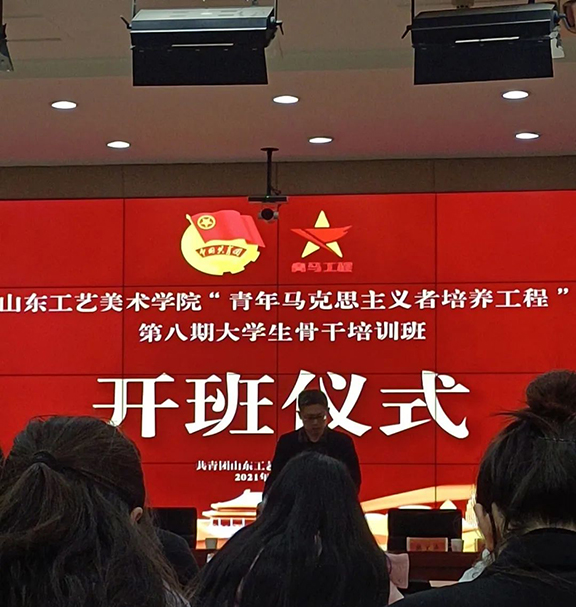 作为“青年马克思主义培养工程”第八届大学生骨干培训班成员和其他骨干一起学习领悟习近平总书记给中国冰雪健儿的回信。在中国共产党临沂市第十四次党代会召开时,作为大学生青年代表发表感想,并参与2020年、2021年新生主题团课讲解,“四史故事我来讲”团课讲解等活动。