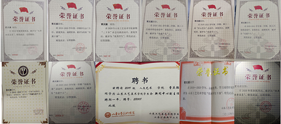 获得荣誉:省级“三下乡”优秀学生,校级“优秀团员”、“优秀团干”、“优秀学生”、“优秀学生干部”、“二课达人”等校级及以上荣誉30余项。