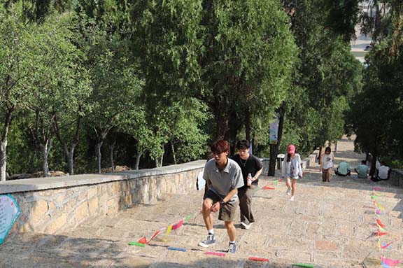 以数字抱团、校园拼图接力赛等趣味游戏点燃现场气氛,现场加油助威声此起彼伏,同学们在快速反应与团队协作中热身,欢声笑语间为即将到来的登山挑战积蓄热情与活力,进一步强化了勤工助学学子的凝聚力和团队合作意识。活动开始前,负责人为每队发放小彩旗,并详细讲解比赛规则和安全注意事项。每组出一个人抽取爬山顺序(每组上山间隔1分钟),收拾整顿后,按游戏综合成绩决定爬山线路。