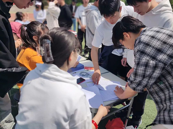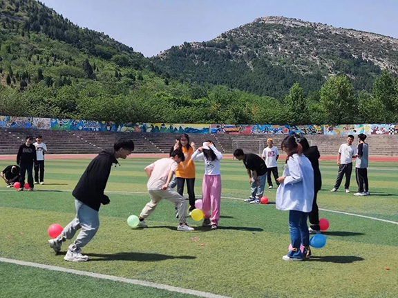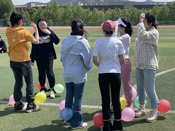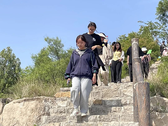 为了增加活动趣味性,在登山活动开始之前增设了“踩气球”“叠就完了”等趣味游戏,参与的同学们热情饱满、兴致盎然。为保证登山活动的顺利进行,勤工助学管理办公室同学先行上山探察路线并做好路标,以确保此次登山活动的安全性。随后各组队伍从东门来到北大山入口前,通过抽签的方式决定该组的登山路线。