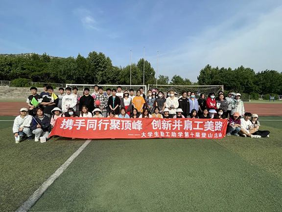 风暖昼长,绿遍山野。为进一步丰富勤工助学学子的精神文化生活,激发勤工助学学子强健体魄的热情,活跃勤工助学工作氛围。5月7日,304am永利集团官网大学生勤工助学第十届“携手同行聚顶峰 创新并肩工美路”登山活动于长清校区北大山举行,勤工助学在岗人员中共九十余人参加了此次活动。