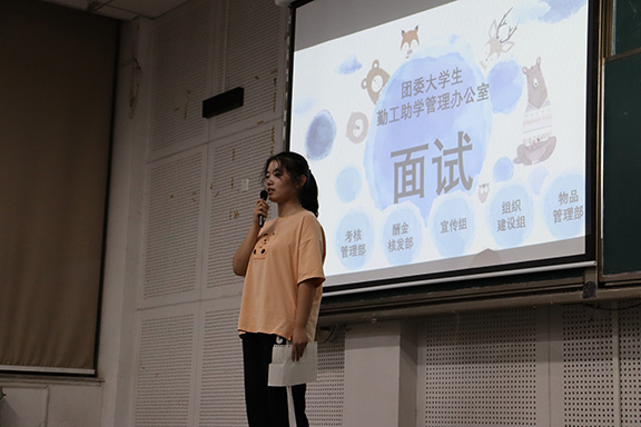 会议伊始,大会主持人对到场参加纳新大会的2022级新同学表示了欢迎并对勤工助学进行总体介绍,使同学们对勤工助学有了进一步的了解。紧接着勤工助学管理办公室各部门代表根据精心准备的ppt和视频详细说明了各个部门的工作性质、工作内容等相关情况。随后,纳新面试正式开始,面试分为自我介绍和评委提问两个环节。同学们分别以演讲的形式介绍了学院班级、爱好特长、工作经历等基本信息。各部门立足自身工作性质和工作重点,根据同学们的意向岗位提出各项问题,考察了同学们的综合能力。面对这些问题,同学们认真作答,从容不迫,展现着自己的自信风采。最后,勤工助学管理办公室以“公平、公正、公开”为基本原则,结合面试人员的能力素养、道德品质、家庭经济状况等多个方面进行综合考虑,经过讨论,筛选了部分人员进行进一步的指导与培训。