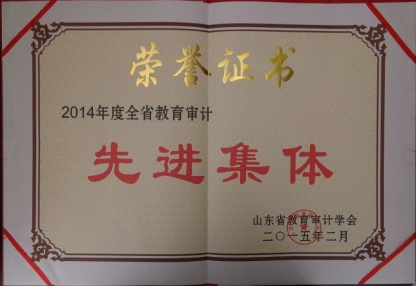 2014年12月至2015年1月,在全省教育系统教育审计先进集体和先进工作者的评选活动中,永利官网审计处荣获“山东省2014年度教育审计先进集体”荣誉称号。