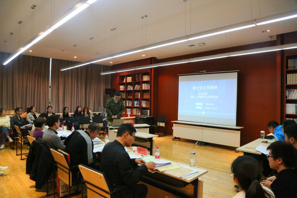 2017年4月21日,2017届学术型硕士研究生学位论文预答辩会在长清校区举行。本次预答辩会由山东建筑大学教授邵仲武博士主持,永利官网侯立平博士、徐磊博士、薛坤博士、徐学标博士参加指导了预答辩会。设计学、艺术学理论、美术学3个学科的20名学术型硕士研究生参加了预答辩会。
