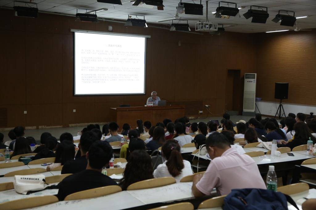 2018年9月14日下午,清华大学首批文科资深教授刘巨德应邀在长清校区阶梯一教室作《浑沌的美神》学术讲座。副院长董占军以及李岱玫老师先后主持了讲座。